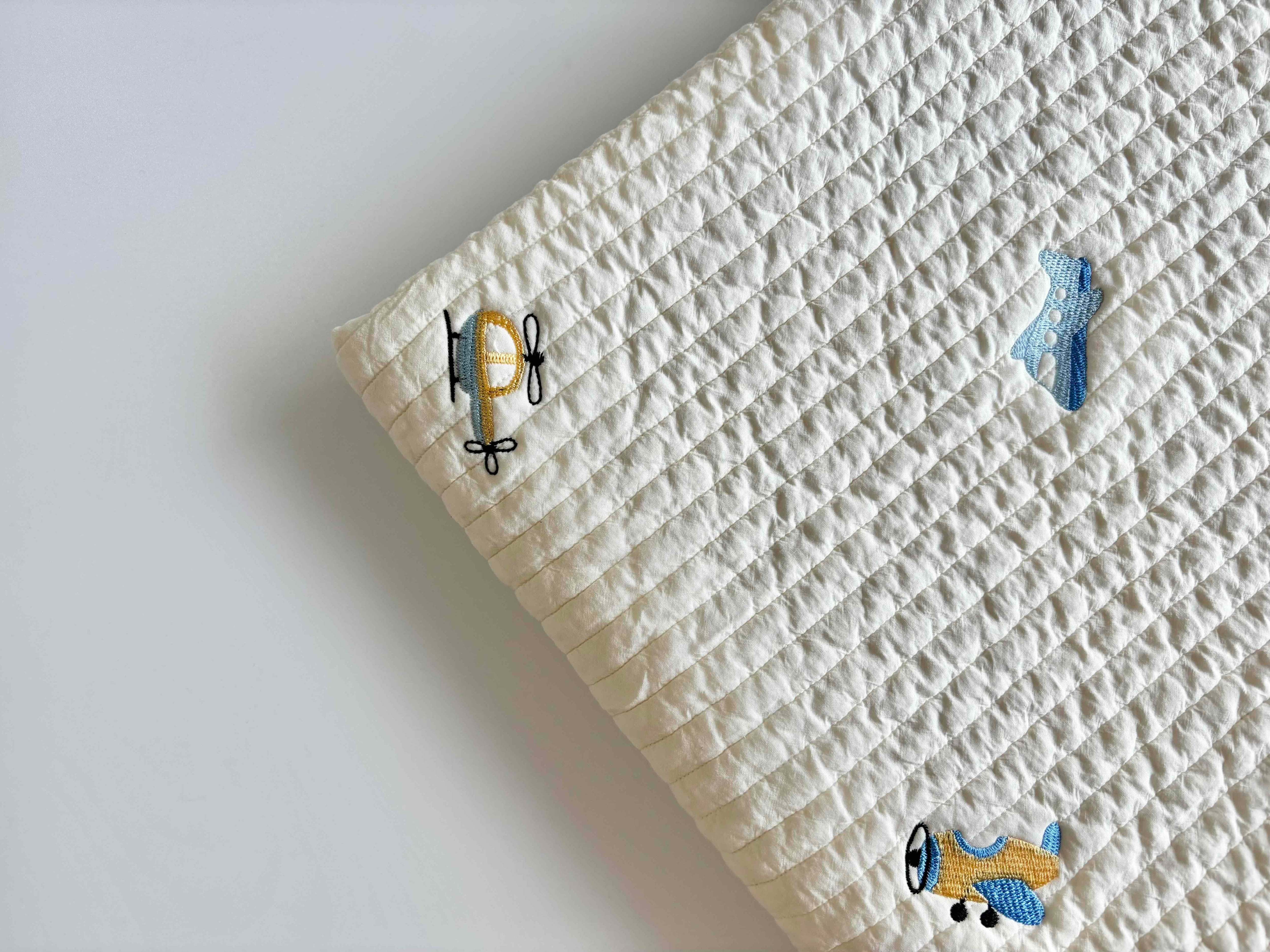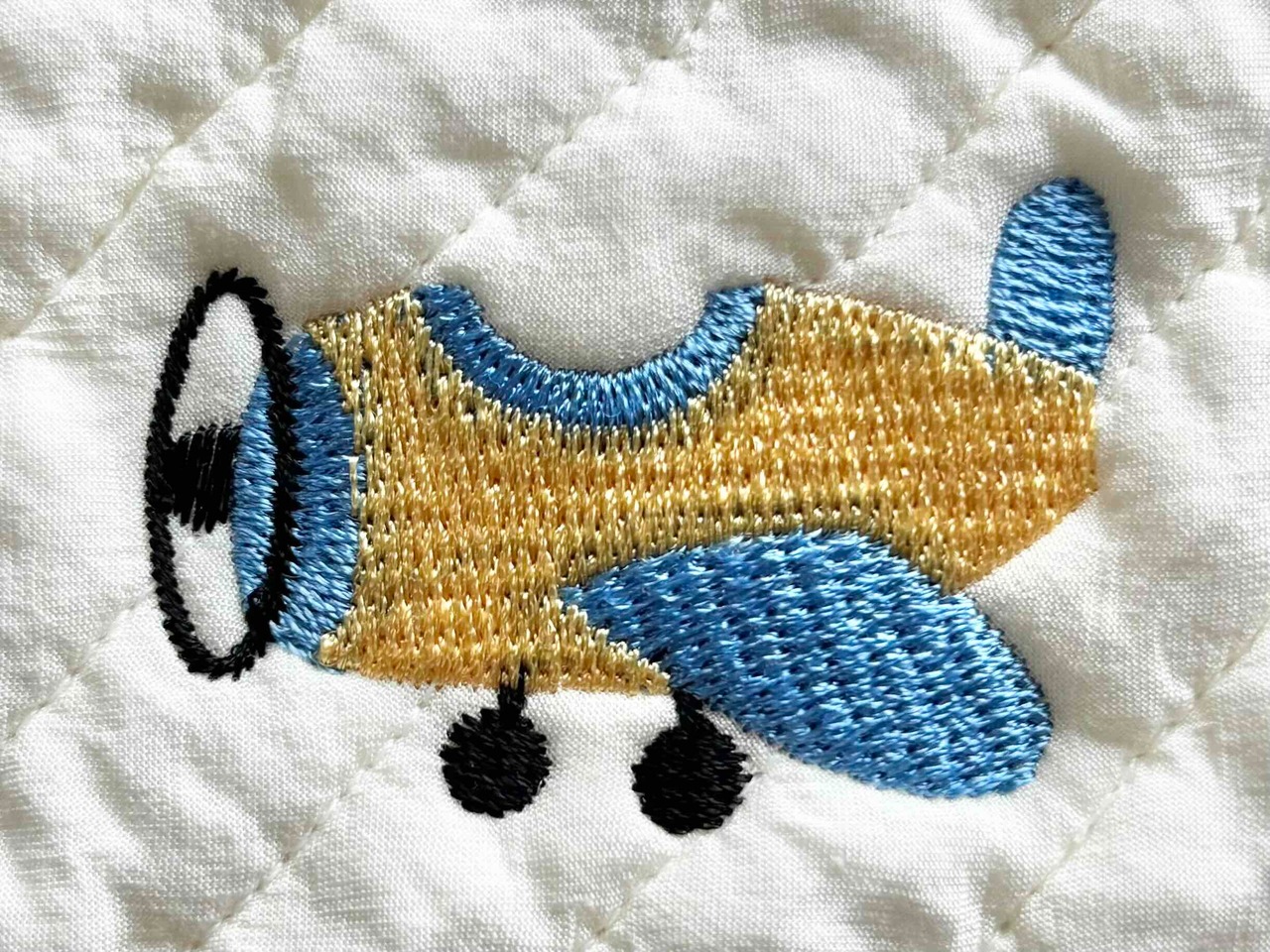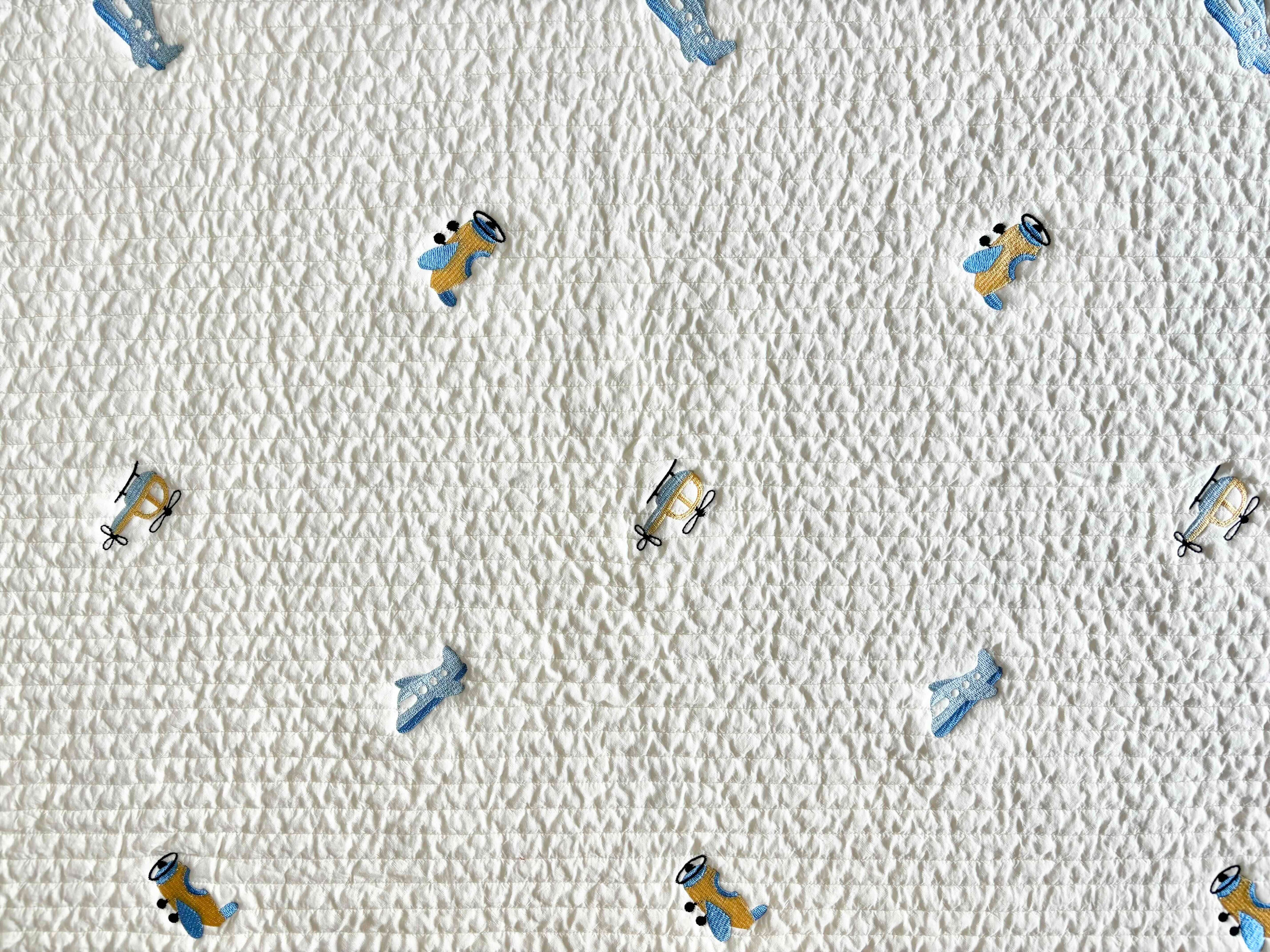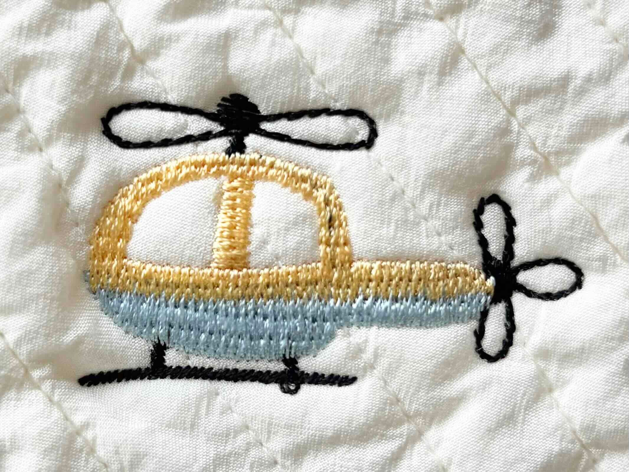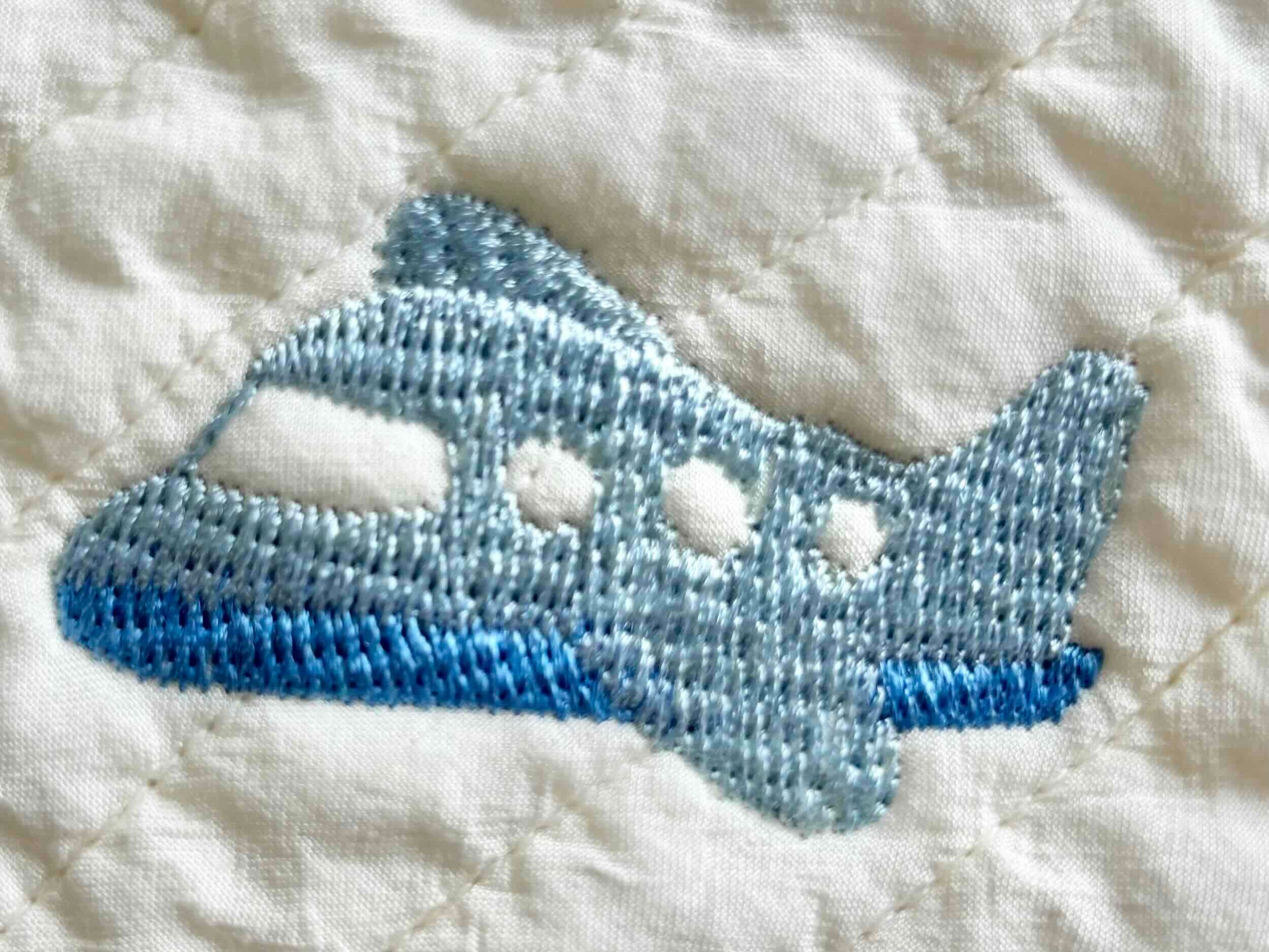 ∞サイズ:刺繍サイズ 約縦25mm,横50mm(全体水色の飛行機)・刺繍間隔13cm〜20cm