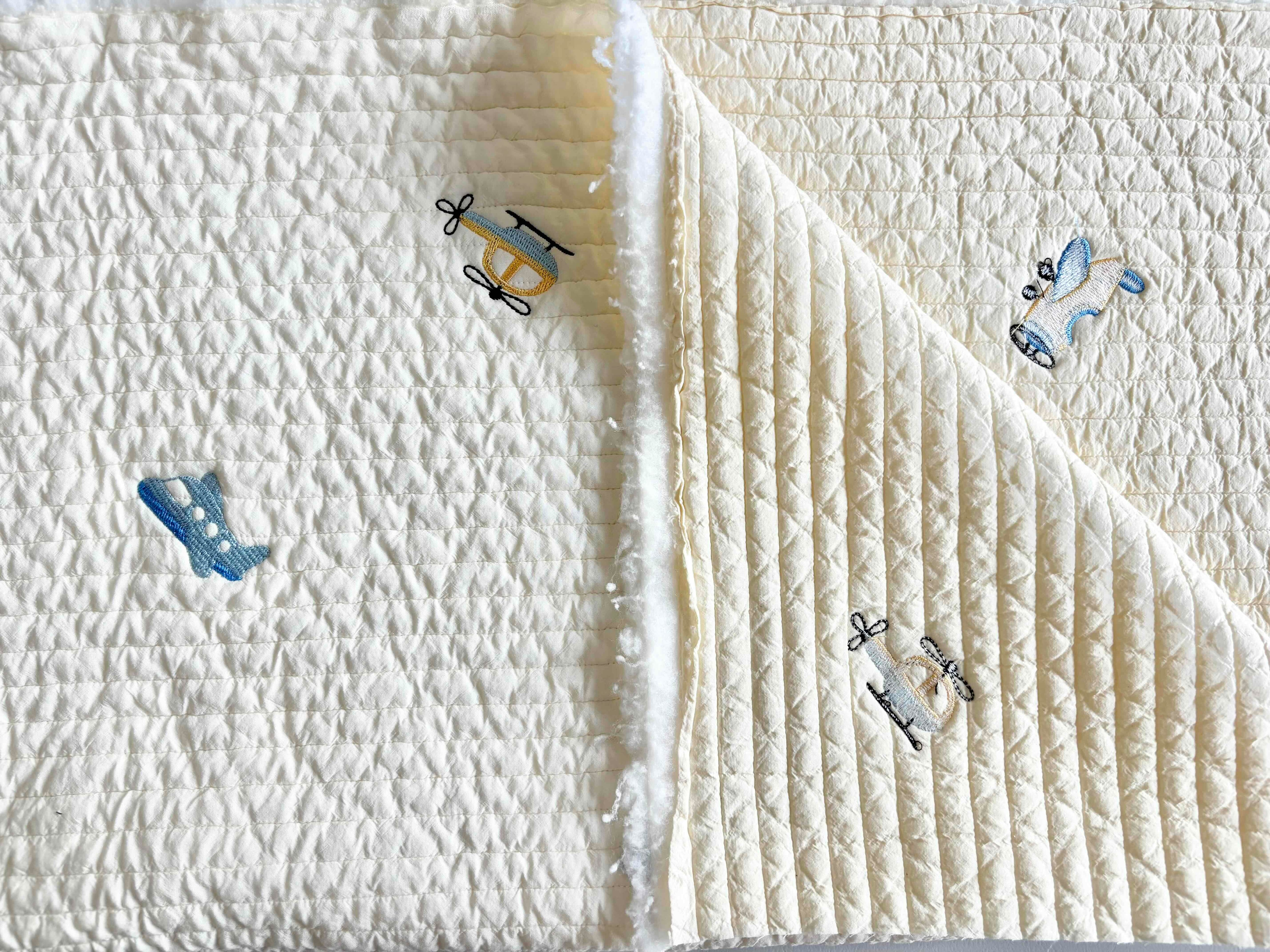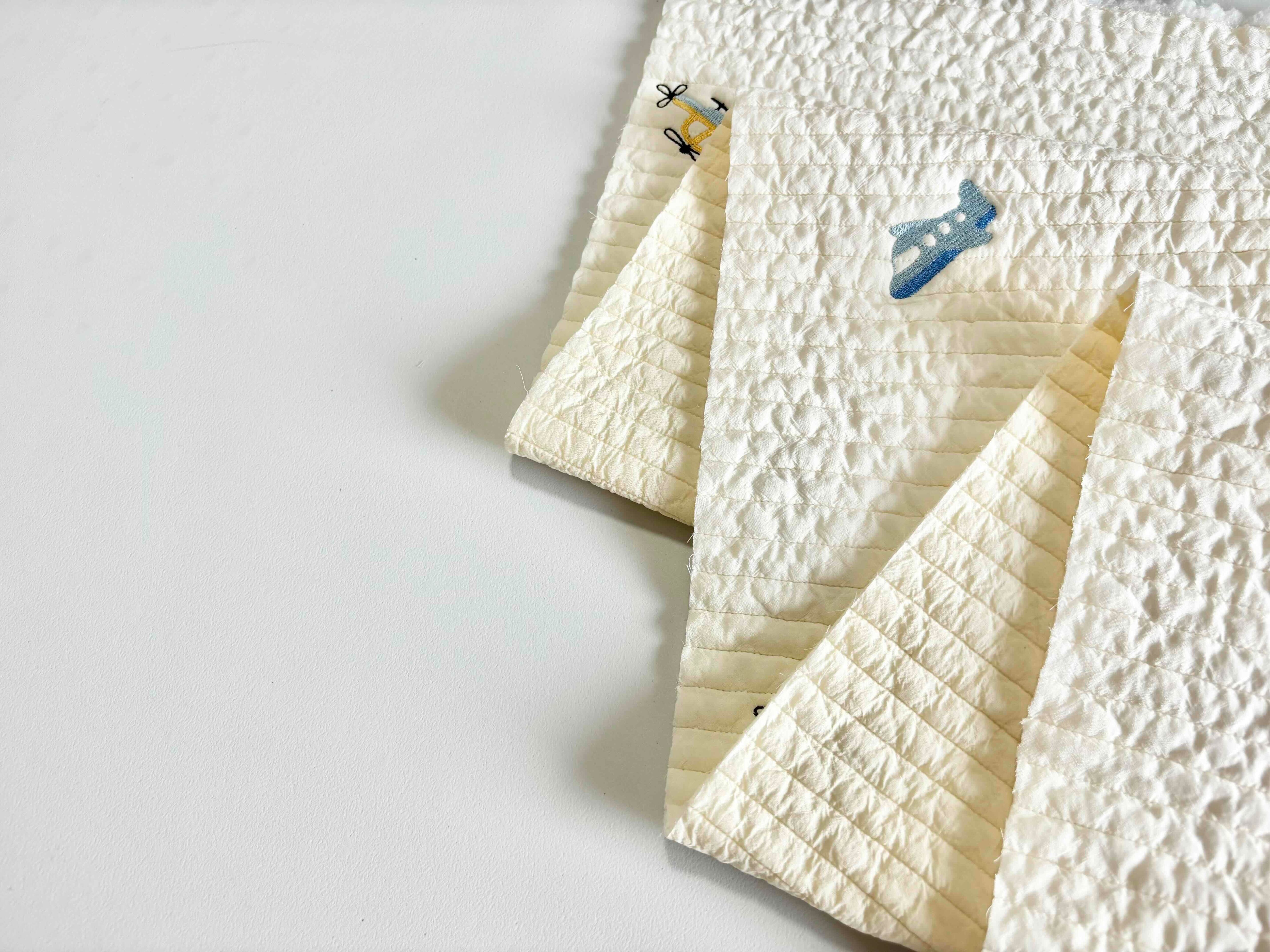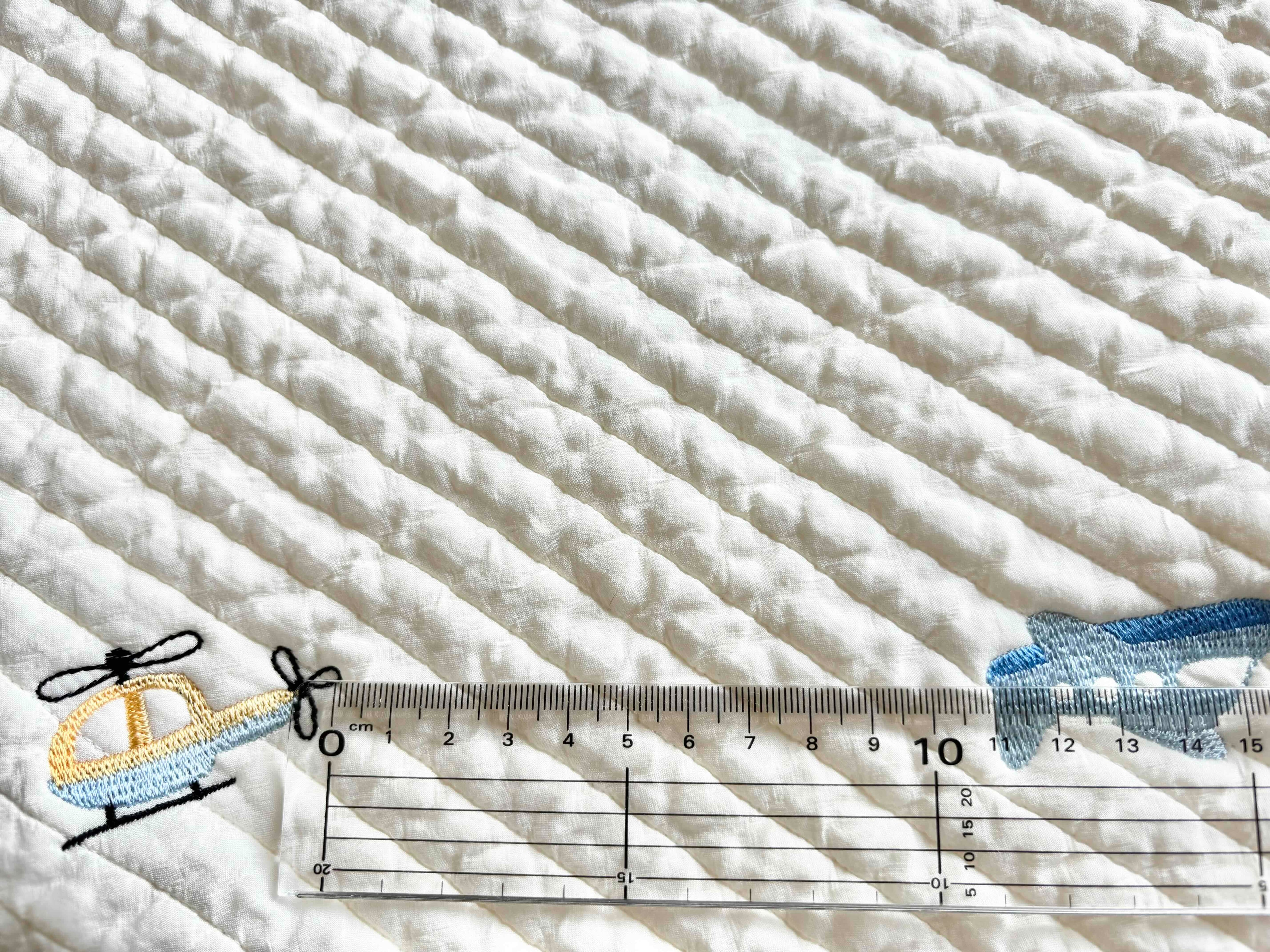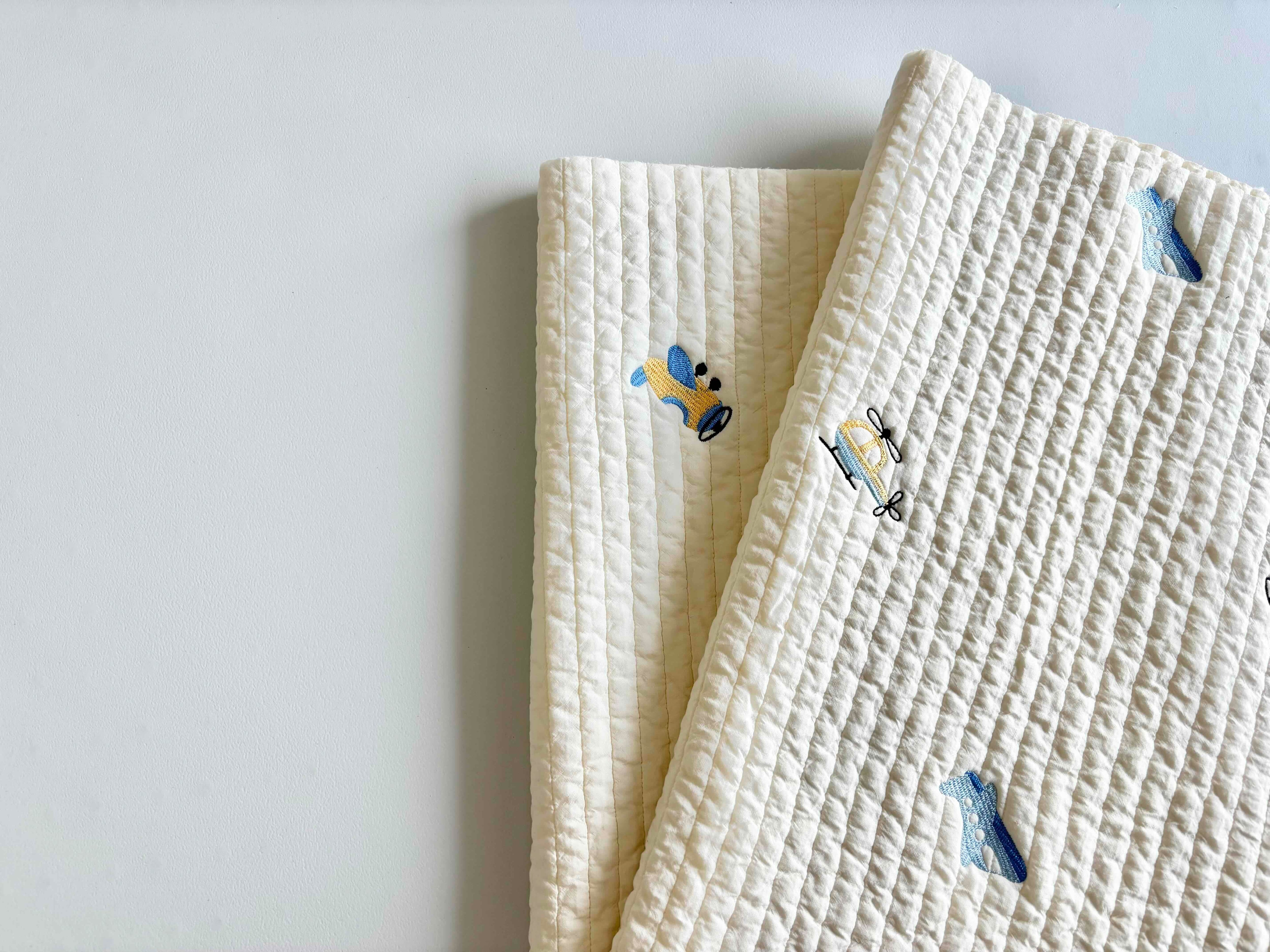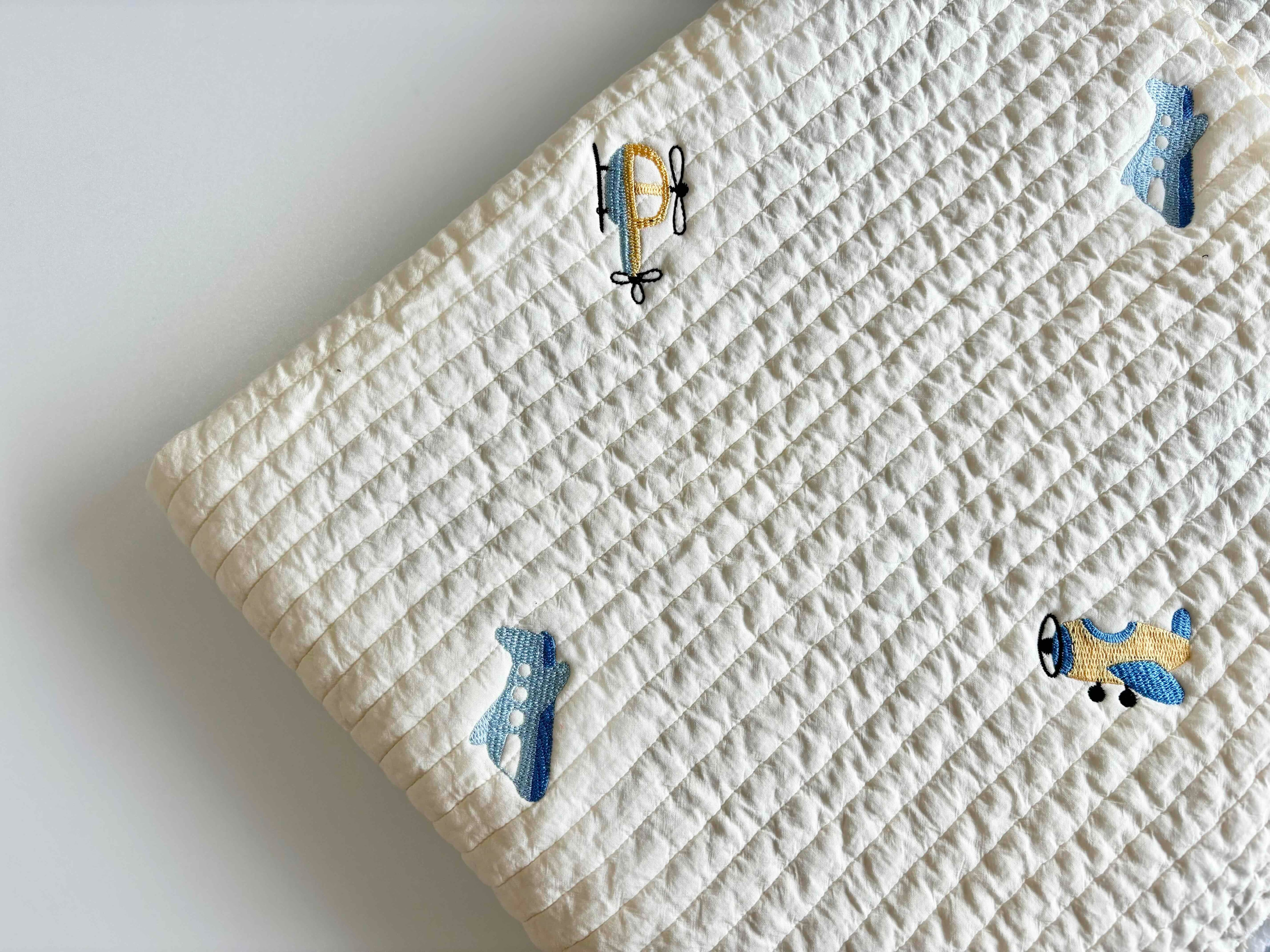 ∞サイズ:刺繍サイズ 約縦25mm,横50mm(全体水色の飛行機)・刺繍間隔13cm〜20cm