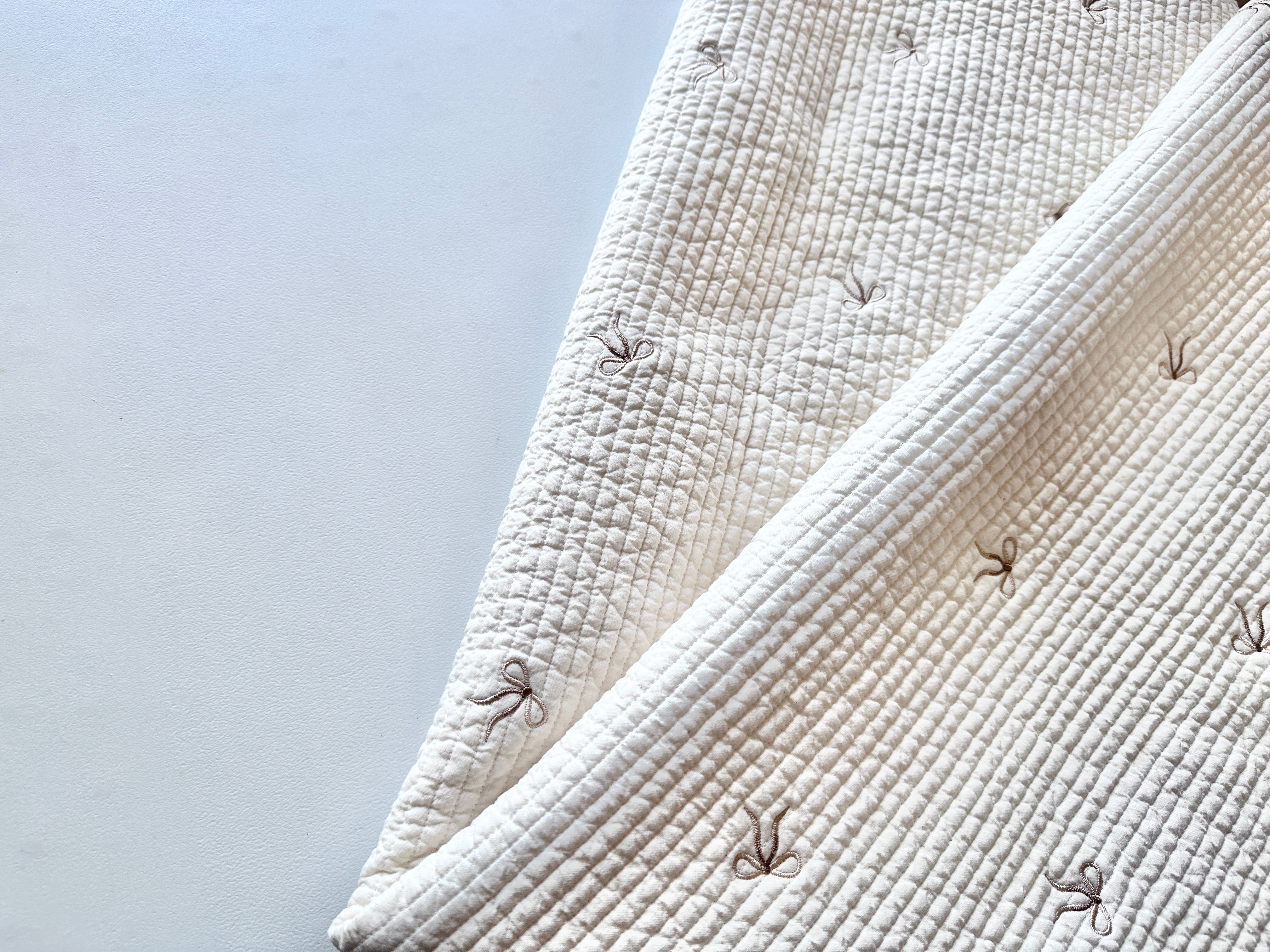 7mm幅のキルティング加工により、ふっくらとした厚みとやさしい風合いが特徴。